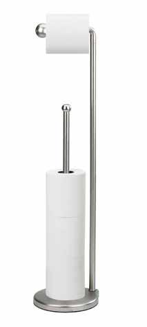 Hvis der skal rækkes for langt efter toiletrullen på væggen siddende fra toilettet, så kan en fritstående toiletrulleholder til gulvet være løsningen. Tucan hedder denne holder til toiletpapir, der er designet af Helen T. Miller, og som har plads til 5 ruller i reserve og den, som er i brug. Den har en god højde og kan nemt placeres tæt ved toilettet, præcis hvor man ønsker den. Hovedet på holderen vippes op, når der skal sættes ruller på plads. Den runde bund er meget tung, så toiletrulleholderen står solidt på gulvet. Den måler 74 cm i højden og 20 cm i diameter og er udført i støbt plast og metal. Set hos fenomen.dk til 269 kr.