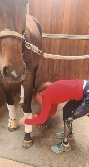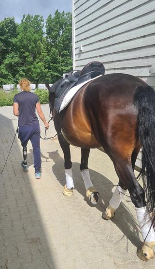 Så gælder det modsatte for Maria Claumarch. Hun bruger egne private midler for at dyrke sin sport som dressurrytter. Det gør hun, fordi hun elsker sporten og samværet med hesten Antonio. Foruden hverdagens kamp som mor med amputation, og de besværligheder det medfører, er der også en kamp mod kommunen, der har gjort livet sværere for Maria. Det kan du læse om inde i bladet. Trods de mange kommunale benspænd, så skal det ikke gå ud over Antonio. Her spænder Maria bandagen for at gøre klar til dagens dressur-træning.