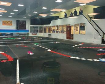 – på rundtur i klubbens baner Bagerst i rummet er klubbens mindste bane til mini-Z biler. Banen ligger på et bord, som er let at overskue, også siddende. I klubbens allerstørste rum er indendørsbanen. “Prøv at gå op i køretårnet og se ud over banen,” opfordrer Jørn. Jeg bevæger mig op ad trapperne og får et overblik over hvert et sving på banen. To medlemmer er i fuld gang med at køre, der er fart på bilerne, som suser gennem banen i flotte kurver. Hvert år afholder klubben en banelægger-dag, hvor medlemmerne kommer med forslag til en ny bane. Der tegnes og præsenteres idéer, og til slut afgøres det ved afstemning, hvilken bane der skal lægges. “Så bliver det ved med at være sjovt - vi får alle sammen lov til at sætte vores præg på banen, vi kører på hver sæson,” oplyser Jørn.