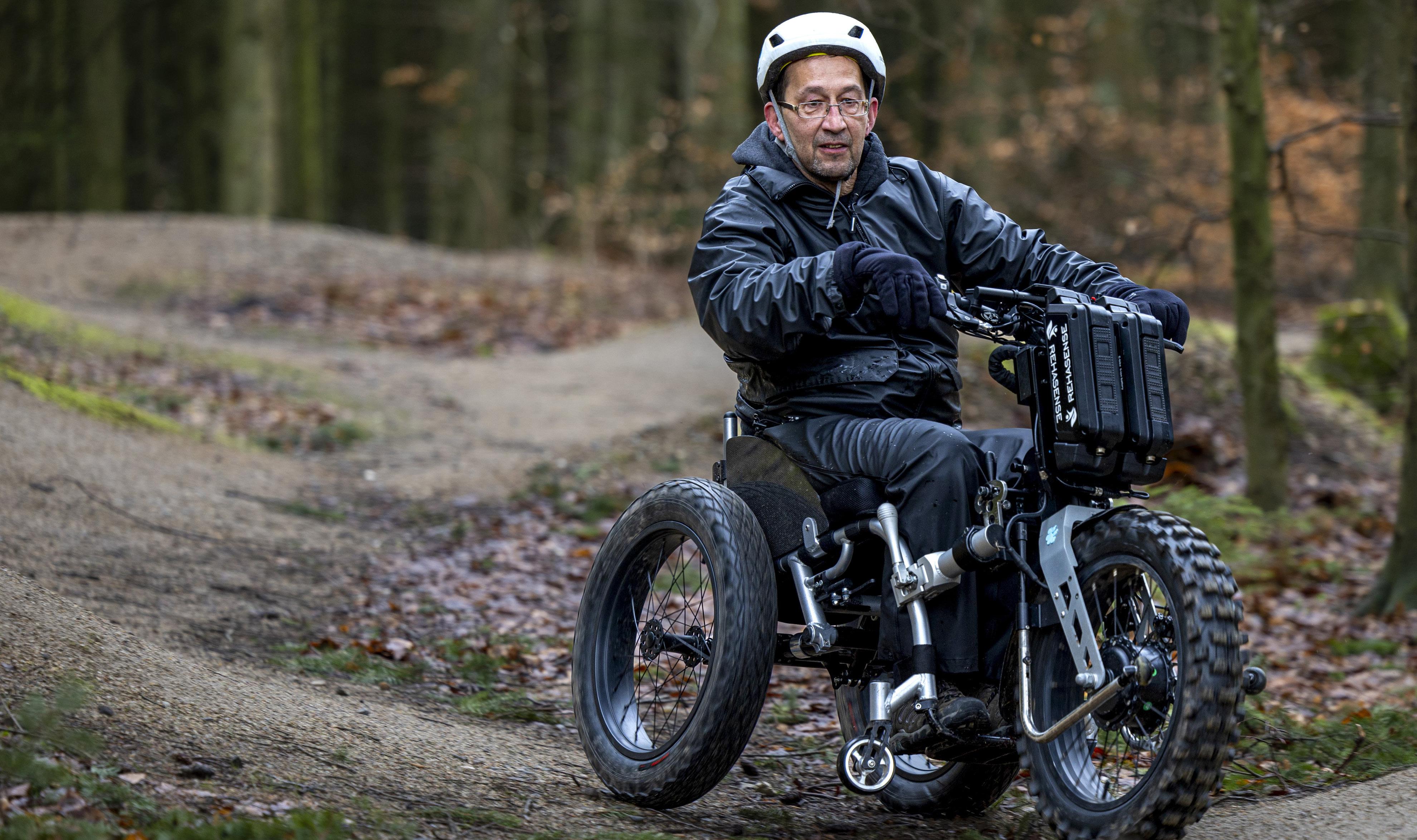 Mellem træerne Rold Skov er der anlagt et bredt net af mountainbikespor. Her suser ivrige motionister på farvestrålende cykler op og ned ad bakkerne. Men de får dog ikke stierne helt for sig selv. De må nemlig dele dem med 57-årige Erik Vels Bentsen og hans kørestol, der suser afsted på den våde jord. De brede dæk knækker de smågrene, der ligger i vejen. En forhøjning nærmer sig hastigt. Erik hiver rutineret i styret, og hjulene følger sporet rundt. Pludselig løfter det ene baghjul sig, og stolen balancerer på to hjul. Den regntøjsklædte fører ryster dog ikke på hånden, og snart efter har alle tre hjul igen kontakt med underlaget.