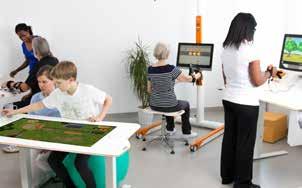 Ud over computerassisterede robotter består Tyrosolution også af en kæmpe sensorregistrerende tablet med mange forskellige terapispil for børn og voksne.