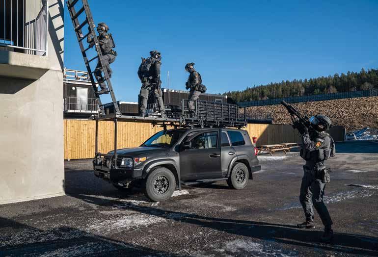 En panservogn kører hurtigt op foran murstensbygningen. Bevæbnede mænd med hjelme, klædt i grå uniformer, hænger ud af bilen. Delta-gruppen. I løbet af kort tid var de kravlet ind i huset og havde affyret skud. Manden på jorden holdt styr på Deltagruppen via kommunikationsudstyret.