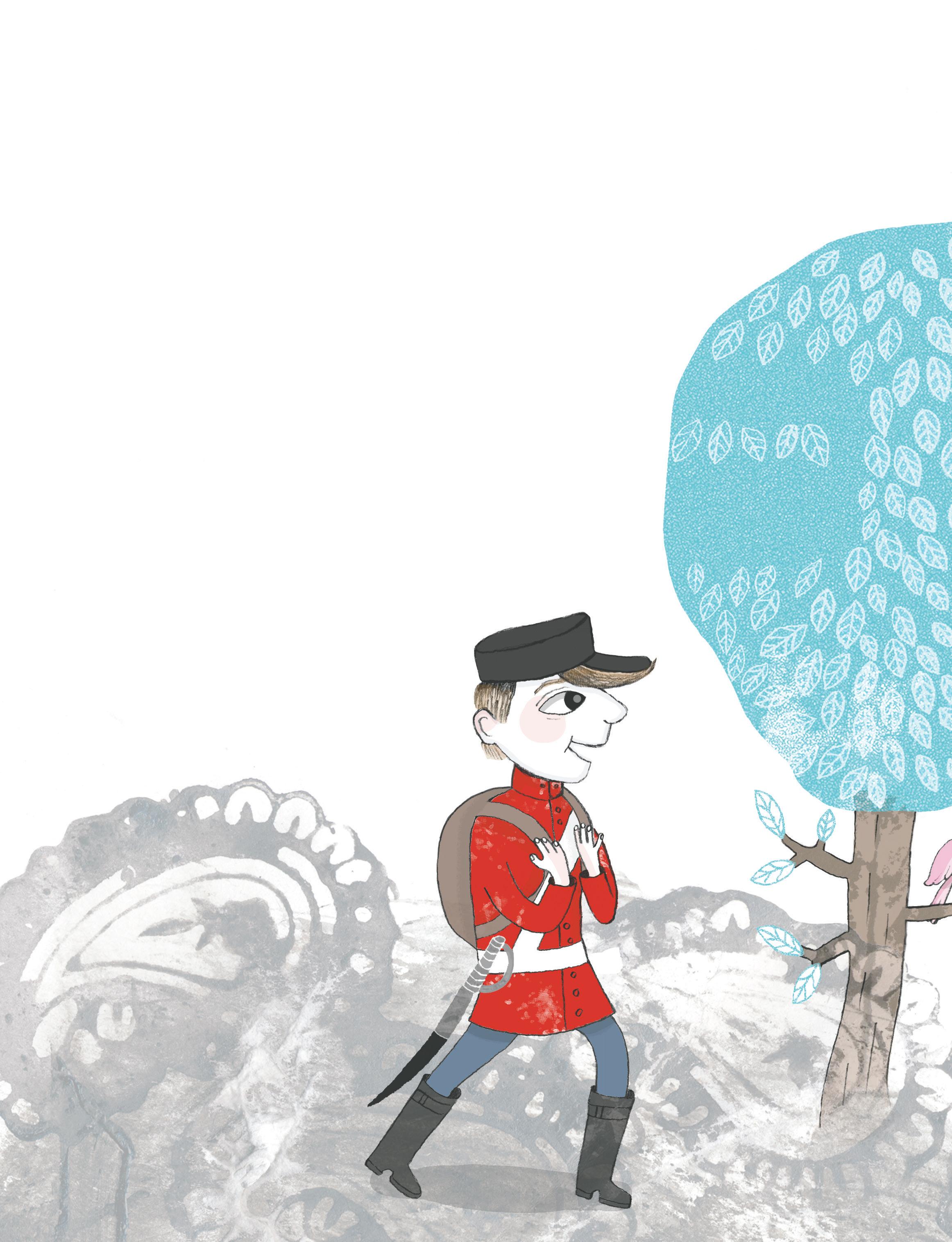 “Et-to-et-to-højre-venstre-sutsko,” sang han, mens han marcherede hen ad landevejen. Han havde lange støvler, rygsæk på ryggen og en blank sabel i siden. “Et-to-et-to-højre-venstre-sutsko.”