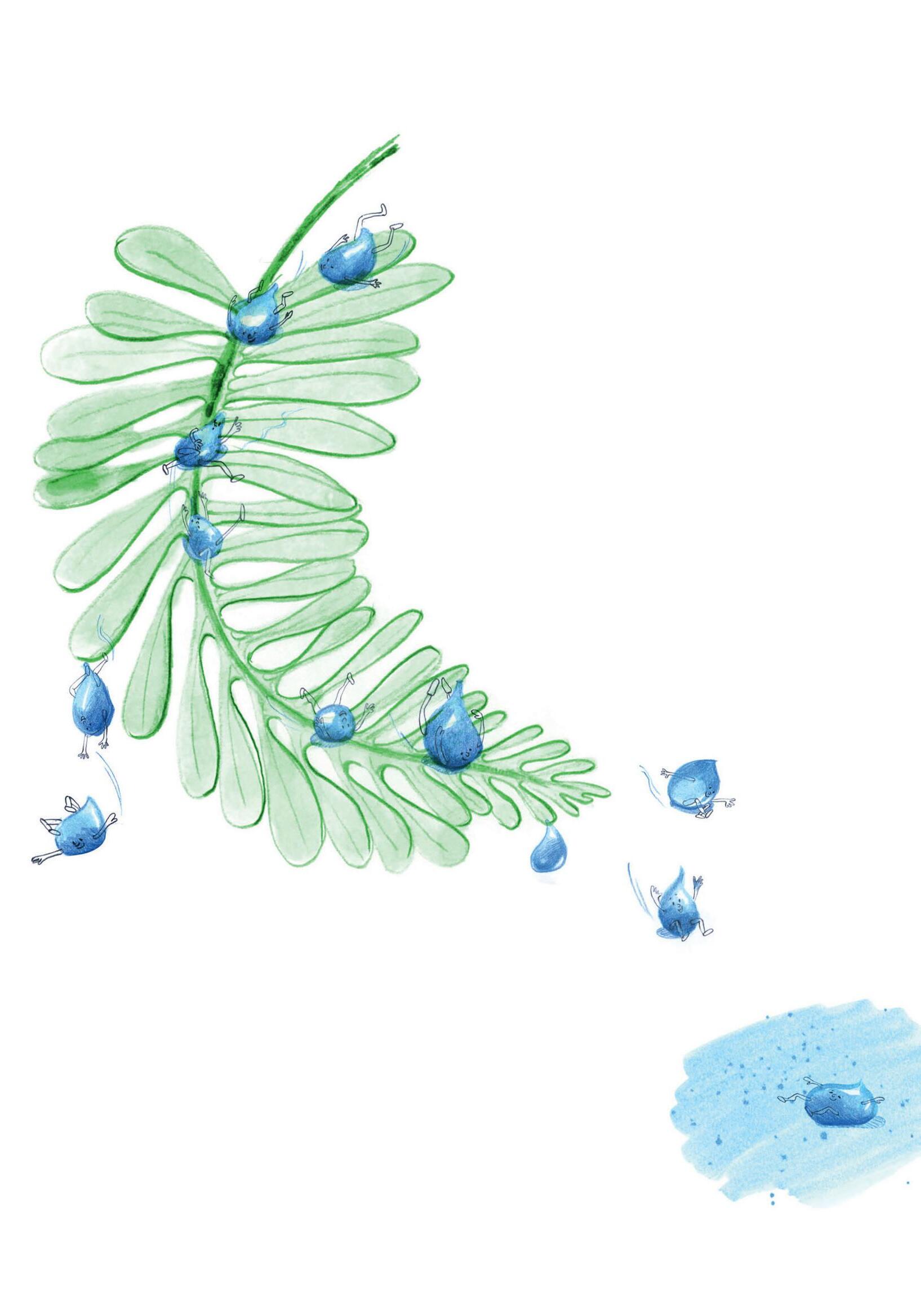 • Vælg et af bevægelses-ordene fra digtet og lav en tegning der viser, hvordan du tror, det ser ud, når regndråben bevæger sig sådan.