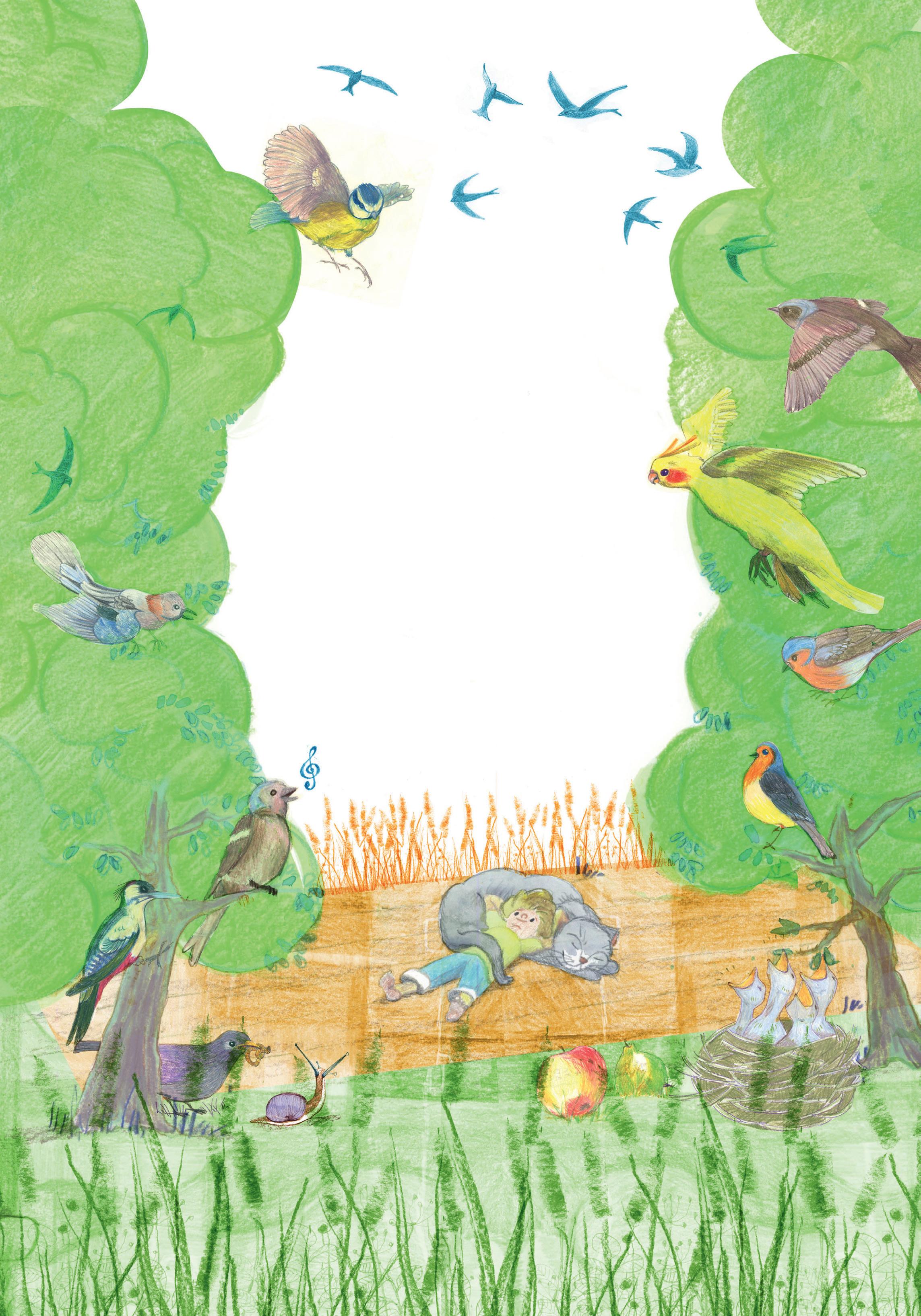 De slår flikflak i haven, og glider på maven. Og løber ad stien, der nu er en bæk. De er kåde og vilde. Men så bliver der stille, for nu skal de hvile i ly af min hæk.