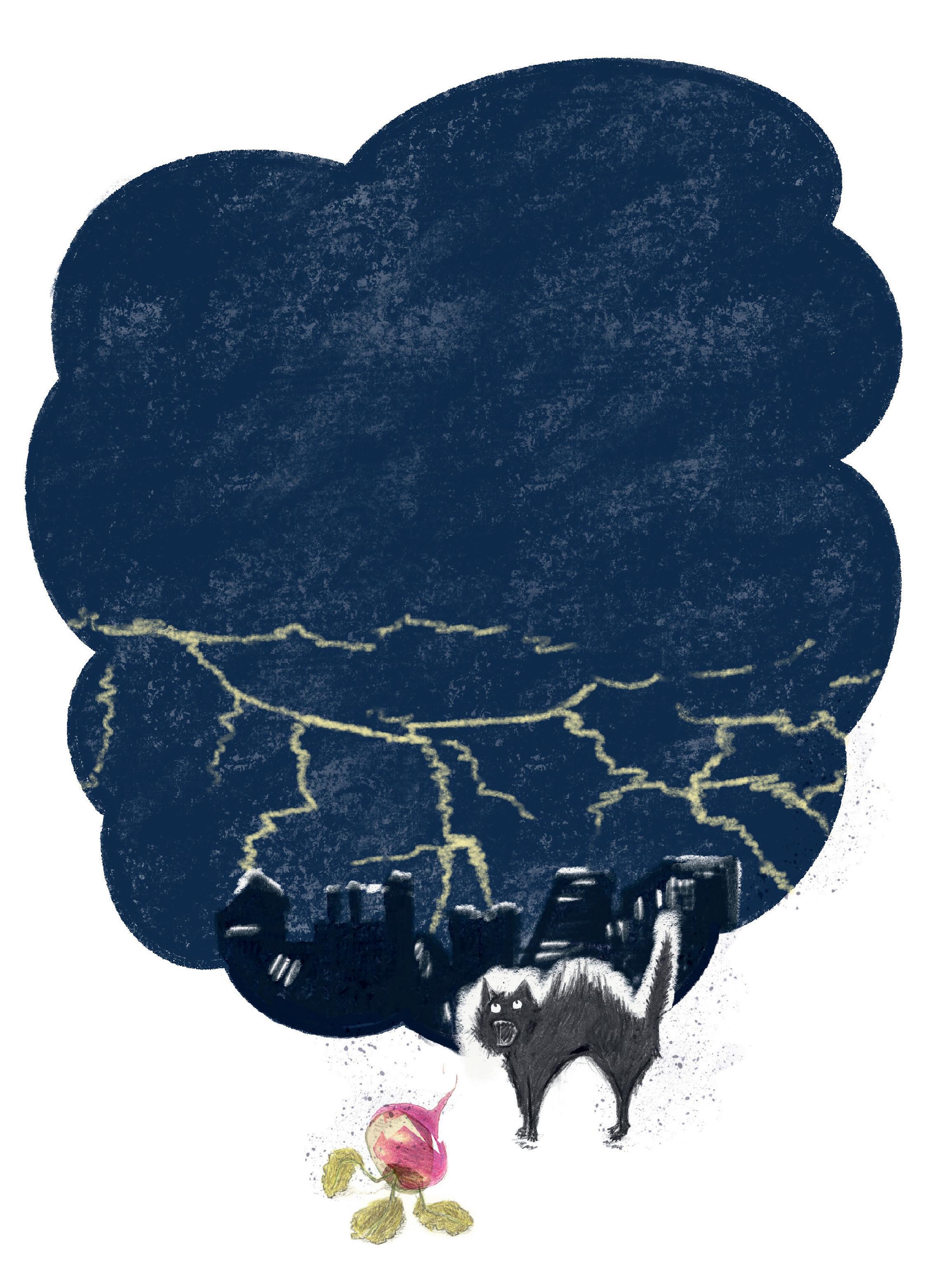 • Luk øjnene og prøv at huske, hvordan et tordenvejr lyder i ørerne, og hvordan det ser ud.