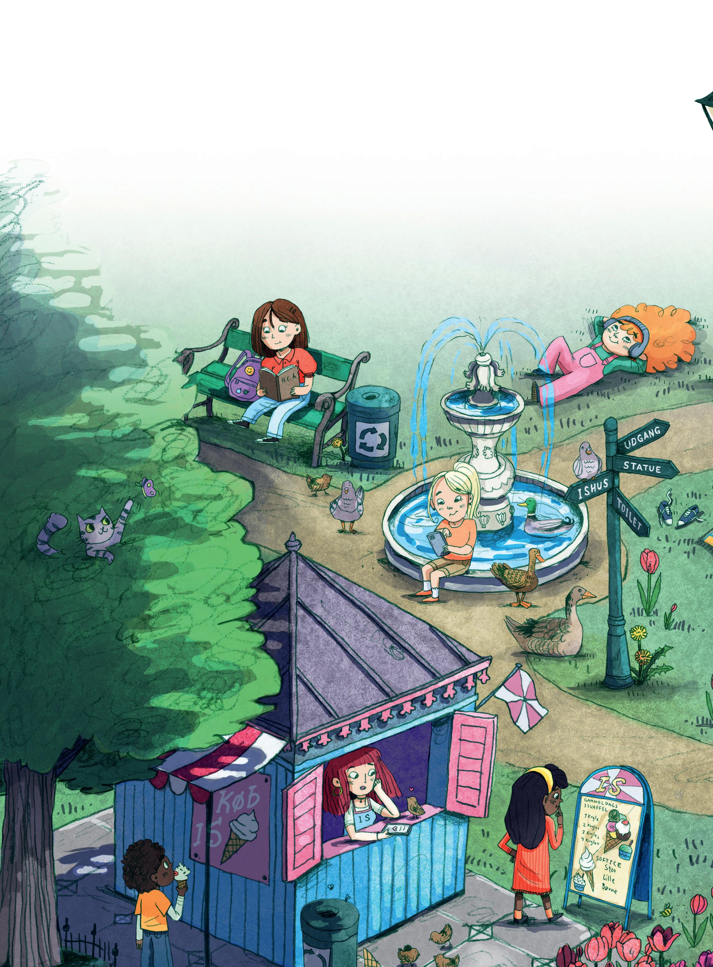 Side 13, 17, 57: Pia Halse: Illustration fra Læs! Læs! Læs! 4, Dansklærerforeningens Forlag 2018