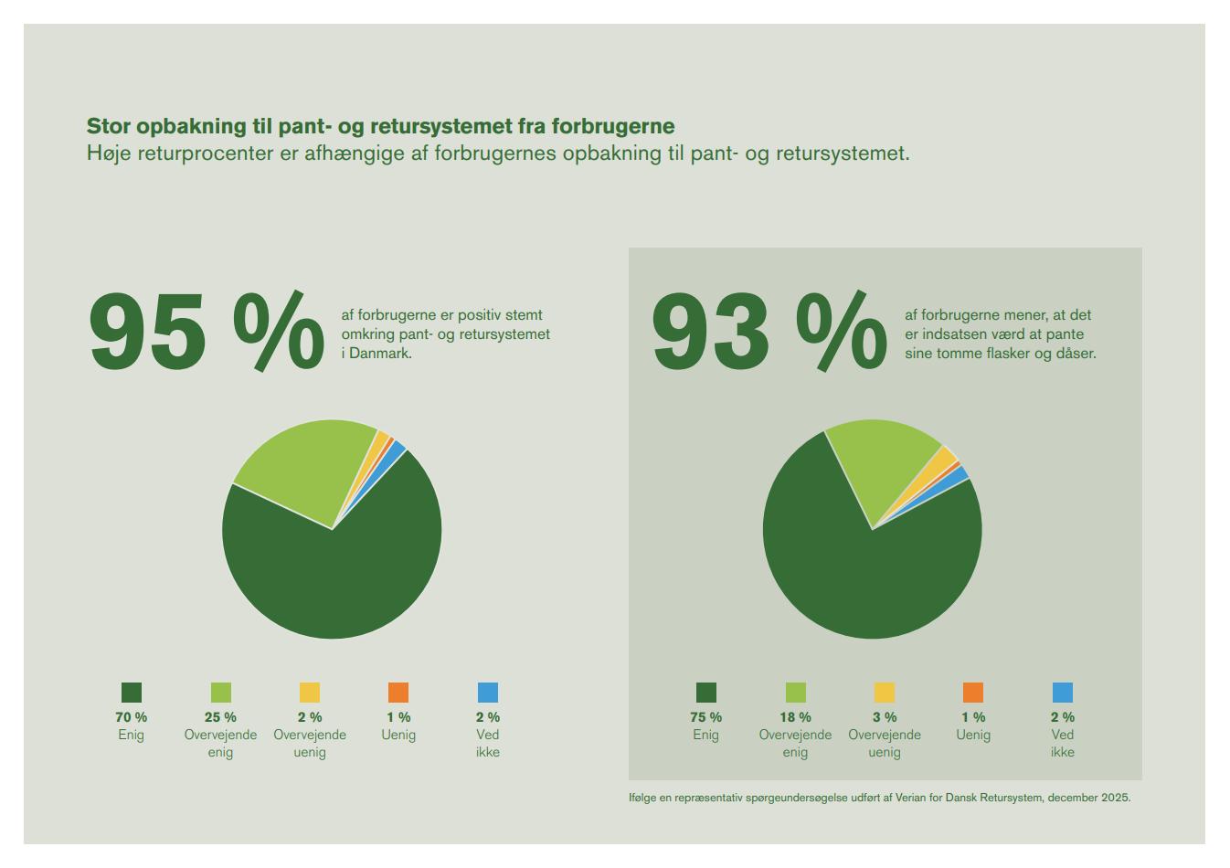 I 2025 fik vi forlænget vores eneret til at drive pant- og retursystem for visse drikkevareemballager i Danmark frem til 2031, hvilket giver os et solidt fundament for den videre udvikling og er et udtryk for, at omverdenen har tillid til os, og at vi leverer resultater hele vejen rundt. Forlængelsen afspejler et stærkt samspil med og bred opbakning i hele værdikæden – fra producenter og importører til detailhandlen og andre kunder, myndigheder og ikke mindst forbrugerne. Det er vi stolte af.