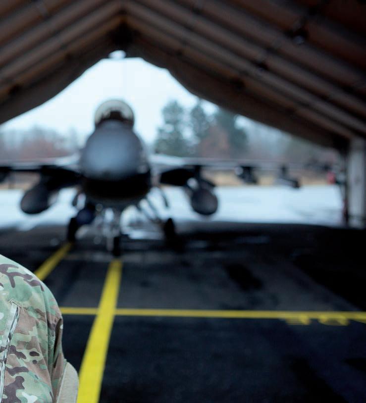 Med hastige skridt suser Peter op til det lille aflukkede område i operationscentret, der overvåger umiddelbare mål. De har opdaget et muligt mål for de to danske F-16 fly, der