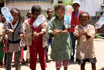 Vi besøger Andavamambaskolen for at følge en time, hvor børnene lærer om hygiejne og sundhed. Da vi er indenfor porten, har jeg straks 500 par brune øjne på mig. Børnene modtager os, som var vi berømtheder. De kigger og stråler, og vi kigger overvældede tilbage og smiler. De griner og flokkes. Lokale Røde Kors-frivillige viser plancher med indvoldsorm og bakterier og demonstrerer effektiv vask af arme og hænder med sæbe. Bagefter skal en udvalgt klasse vise det lærte til de andre elever med sang og dans. Jeg må være med! En lille spinkel pige med et vidunderligt smil, tager udfordringen op. Hun viser mig trin for trin, hvordan det skal gøres. Hun har fuldstændig styr på det. Bagefter, da vi trykker hænder, er hun vokset flere centimeter af stolthed.
