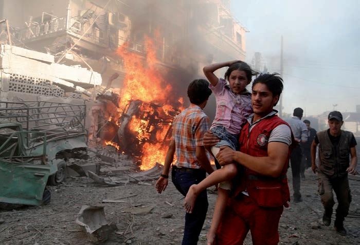 SYRIEN 10.09.16. Luftangreb på en lastvognskonvoj med nødhjælp. En nødhjælpsarbejder og 20 civile blev dræbt.