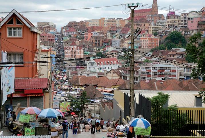 Synsindtryk fra turen fra lufthavnen ind til hovedstaden Antananarivo dagen før kører stadig som en film i mit hoved. Bygninger i stærke farver, menneskemylder og små butikker med alt mellem himmel og jord. Jeg må ud og opleve byen! Den lune morgenluft og hotelvagten, der er klar til at holde gadehandlere på afstand, møder mig. Men end ikke gadehandlerne er i starthullerne så tidligt. Jeg går ud, og få meter længere fremme rammer den mig – Tana, som er byens kælenavn.