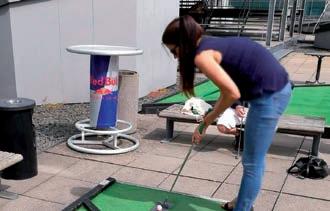 Efter frokost og interviewene går vi alle til Aarhus Minigolf og op på taget af Bruuns Galleri. Vi har spillet en gang tidligere, og jeg har bedt om revanche.
