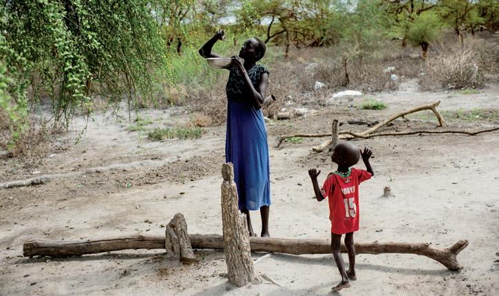 Tre års voldsom konflikt i Sydsudan har drevet næsten fire millioner sydsudanesere på flugt. Heraf to millioner inde i landet og 1,9 millioner til nabolandene. 66 procent af de flygtede er børn. 5,5 millioner sydsudanesere har akut brug for fødevarehjælp.