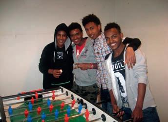 Det er en god dag, hvis jeg skal i Ungdomsklubben. Jeg tager derhen et par gange om ugen, fordi min kontaktperson Javad arbejder i klubben. For noget tid siden tog han mig med derned for første gang. Det er stadigvæk nyt, og jeg kan godt være genert. Især de dage, hvor Javad ikke er der sammen med mig. For jeg kan snakke arabisk med Javad, når han er der, men alle andre dernede snakker dansk. Og jeg kan kun sige meget få ting på engelsk. Men selv om jeg ikke kan forstå, hvad de siger, så er alle sammen meget søde ved mig. Vi spiller billard, bordfodbold eller Fifa. Det er et af de steder, hvor jeg føler mig godt tilpas. De voksne, der arbejder nede i klubben, driller mig tit med, at de nærmest er nødt til at smide mig ud, når de lukker.