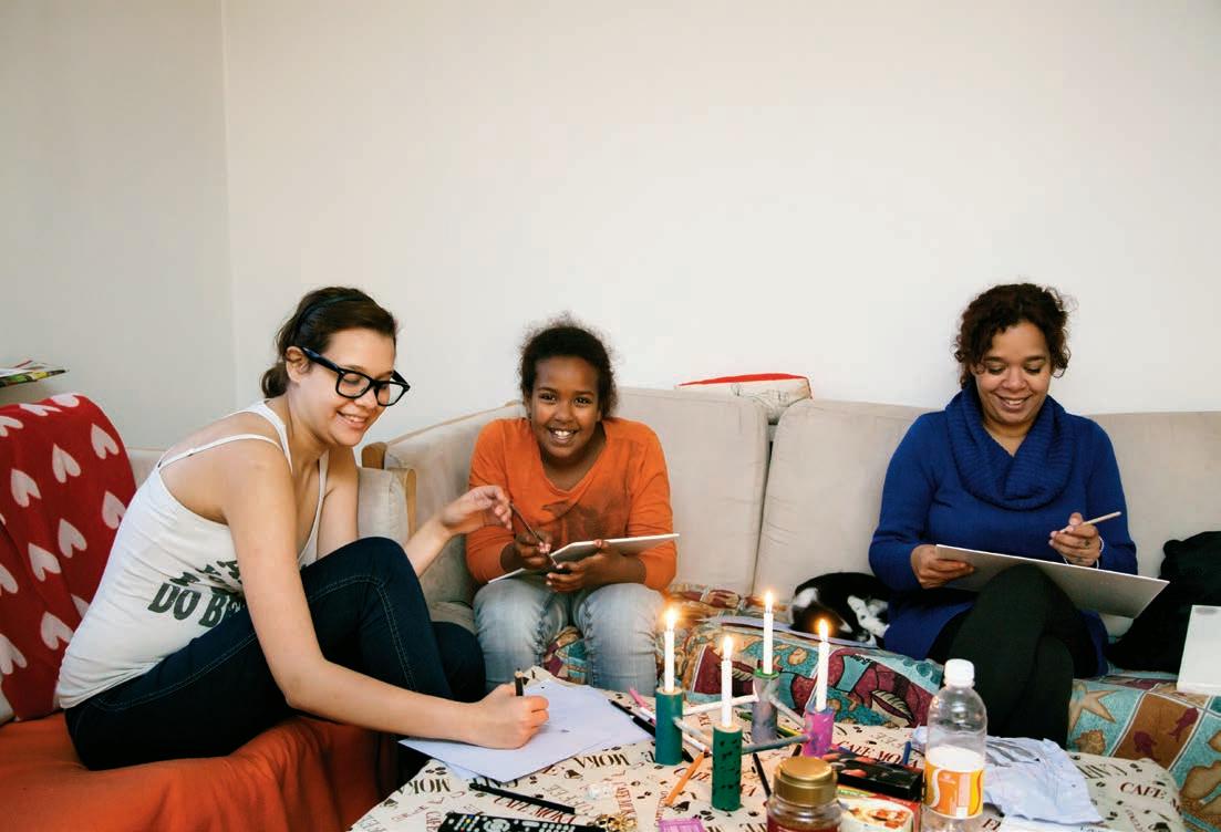 Isabella, Serena og Rosita sidder ofte og tegner eller maler, når de kommer hjem om eftermiddagen. Tegneredskaberne er en del af Røde Kors’ julehjælp fra sidste år.