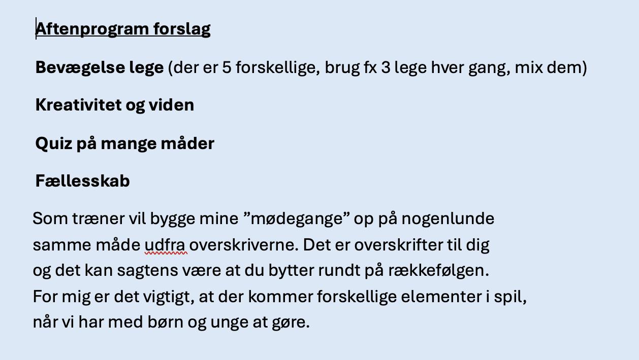 Det kan fx være nogle af de små posteløb I har lavet, kan nogle af aktiviteterne skiftes ud?