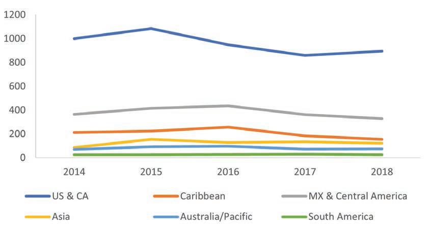 Table 1-2. Number of follow-up cases in the United States, Canada and other countries for 2018 (n=55)
