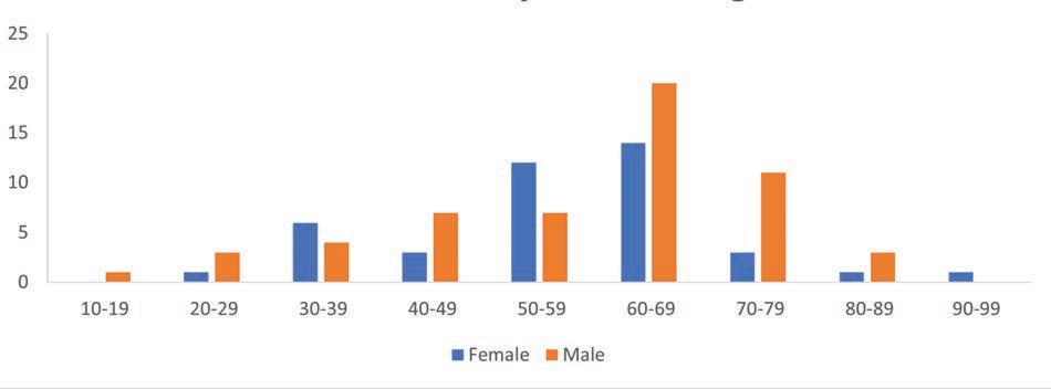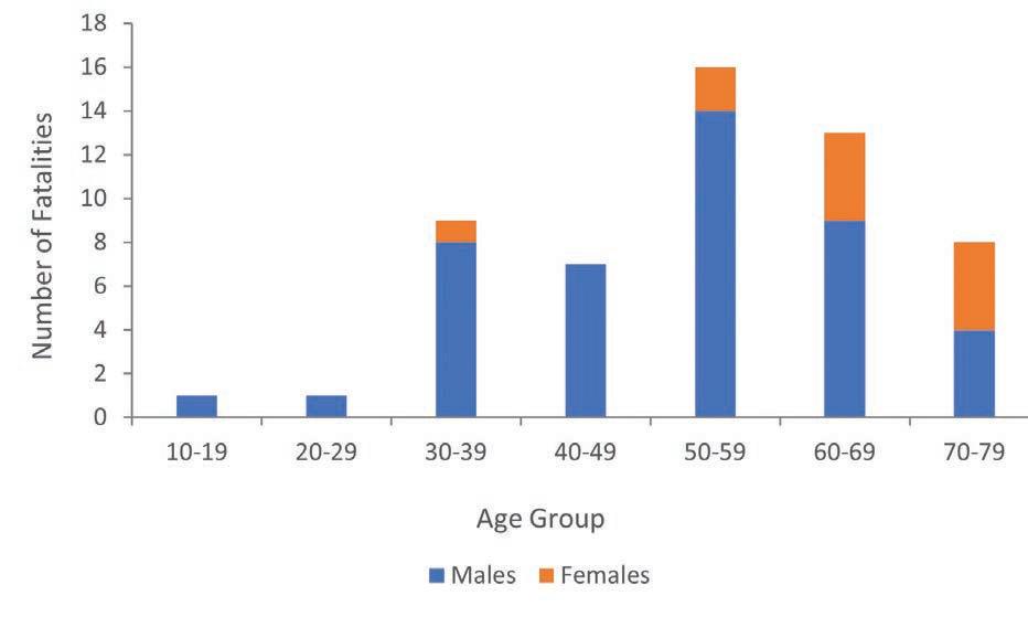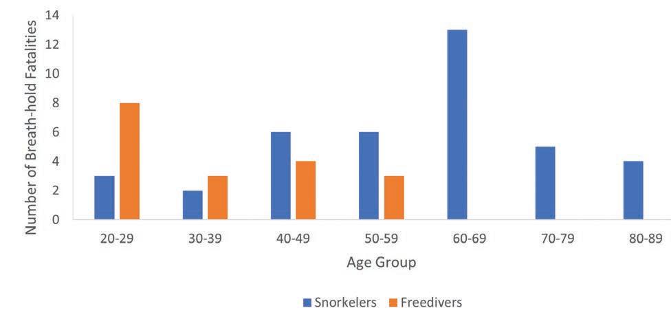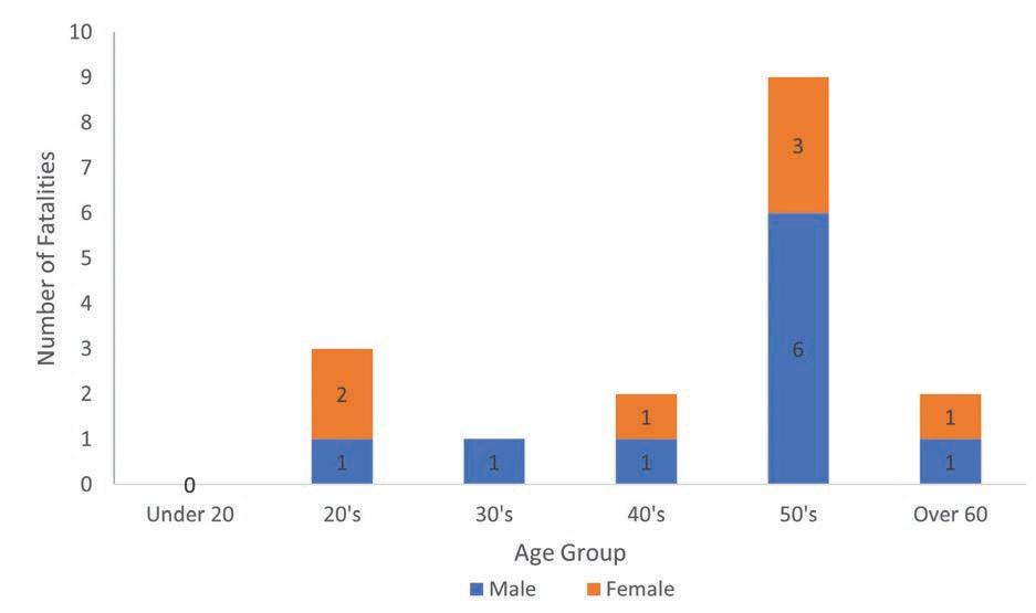 Figure 1-2. Age and sex distribution of reported fatal scuba accidents worldwide in 2018.