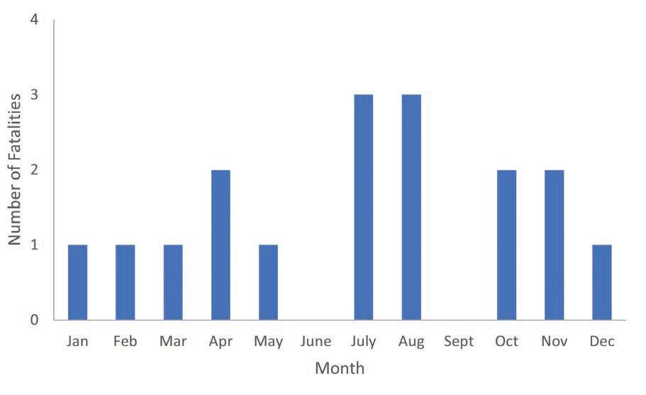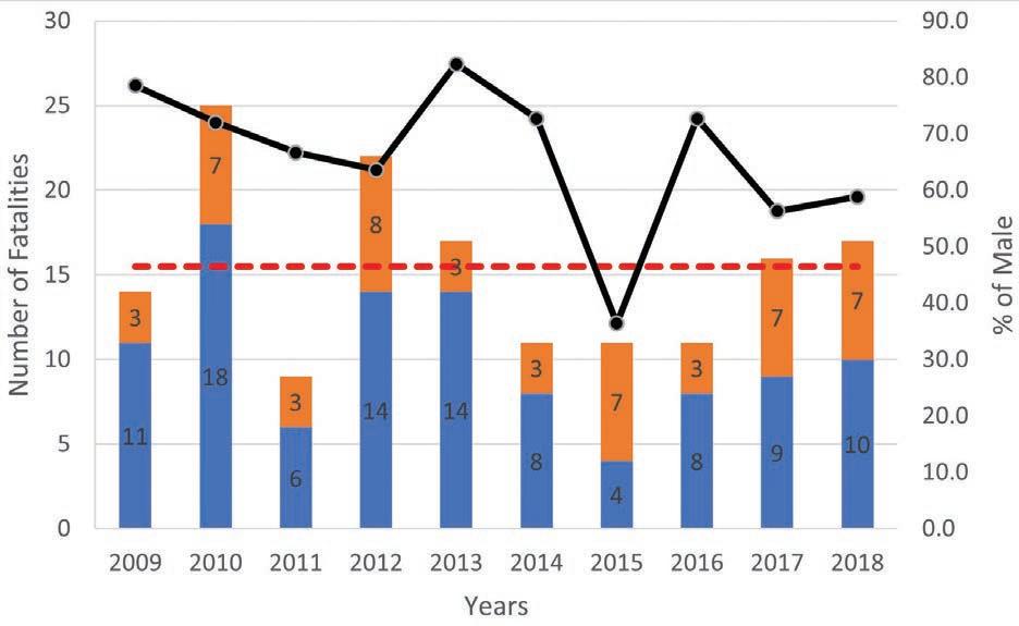 Figure 3-2. Number of fatalities from 2009 to 2018 reported to DAN Japan.
