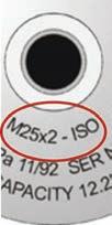 Figures A-7: Different cylinder valve configurations: A) ¾ - 14 NPS (National Pipe Straight), United States standard, DGX DX-722401-O2; B) M25 x 2 - ISO, international harmonized standard, IMCA SF 01/16.