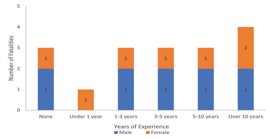Figure 3-5. Number of fatalities by diver experience reported to DAN Japan.