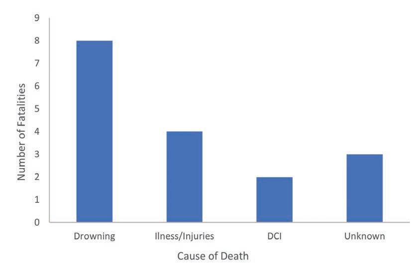 Closed oxygen cylinder 1 Struggle and Entanglement 2 Nitrogen Narcosis 1 Rough Seas 1 Unknown 30