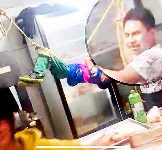 En el video se aprecia como entre risas, amarran y cuelgan a menor de edad con capacidades especiales como si fuera una res, al tiempo que los trabajadores de la carnicería se burlaban del menor, lo cual indignó a muchas personas por las condi ciones del menors que se ha dicho padece de sus facultades.