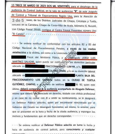 En el caso que se aborda, se trata de la demanda registrada en el cuadernillo de control judicial 360/2022 y que se encuentra concentrada en el juzgado de control y tribunal de enjuiciamiento región 1 para la atención de delitos no graves. En el Cereso «»el canelo», en Chiapa de Corzo, presentada por el afectado Manuel de Jesús Cruz Espinosa, por el delito de discriminación