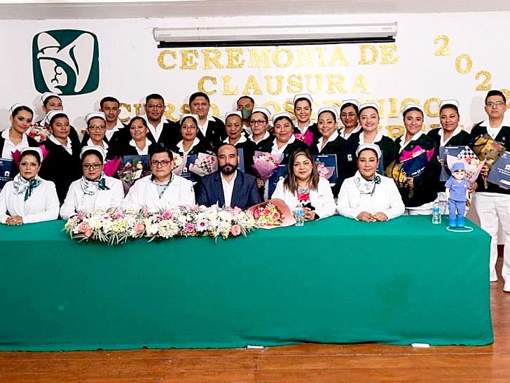 En el acto de clausura, se contó con la presencia de la coordinado ra auxiliar médica en Salud, doctora Yunis Lourdes Ramírez Alcántara; director del HGZ No. 2, doctor Fer nando Franco Vargas; coordinador clínico de Educación e Investigación en Salud, doctor Juan José Galdámez de la Cruz, y jefa de enfermería, Rosa Aurelia Montoya Cano, ambos del HGZ No. 2.