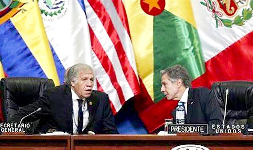 Que se sepa no hay ningún artícu lo de la Constitución Política de los Estados Unidos Mexicanos que le de autorización al señor Blinken de opinar sobre los asuntos mexicanos. Y me refiero a Blinken porque él es el jefe de Luis Almagro, secretario general de ese adefesio, que sólo le ha servido al gobierno de los Estados Unidos, desde que el único gobierno que votó a favor del gobierno revo lucionario de Cuba fue el de México, que votó en contra de la iniciativa de Estados Unidos de romper relacio nes con el gobierno revolucionario de Fidel Castro Ruz.
