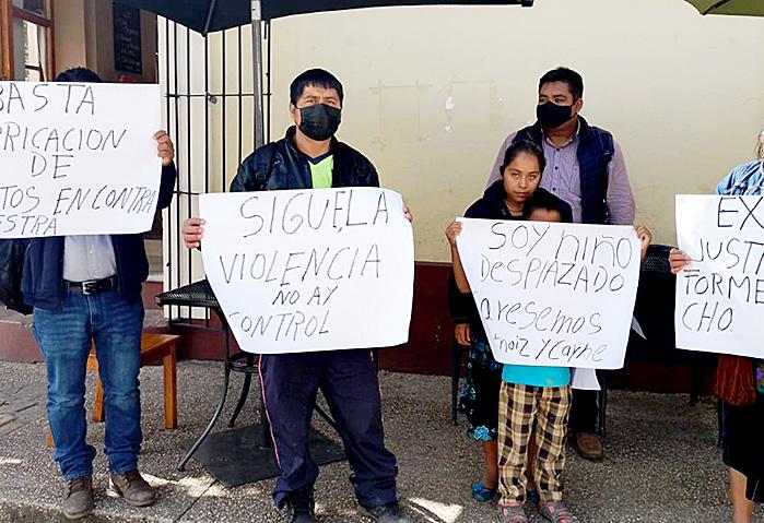 Lo anterior fue lo que manifes tó el vocero de los desplazados del Sector Santa Martha, municipio de Chenalhó, quienes acudieron a esta ciudad para exigir a las au toridades correspondientes aten ción en cuanto a sus solicitudes de seguridad y alimentos, ya que son víctimas de caciques y otras cuestiones políticas, y temen a que esta Navidad la pasarán lejos de casa, pues no existen condiciones de retorno.
