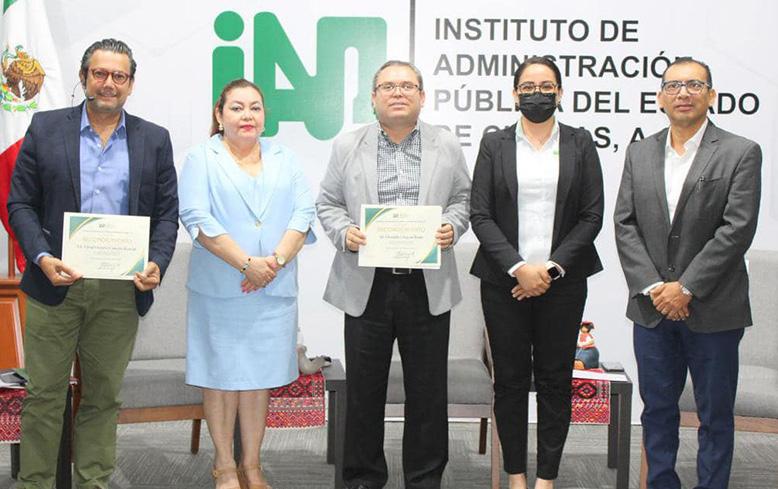 Durante la presentación de esta Conferencia Magistral, estuvo presente funcionariado del IAP: María Isabel Flores Moreno, Directora del Programa de Desarrollo Institucional Municipal; Ana Gloria Carbajal Cruz, Directora Académica; y Daniel Roque Figueroa, Coordinador de Estudios Jurídicos y Reglamentación Municipal; además del comunicador César Cancino Kassab, quien fungió como moderador del evento.