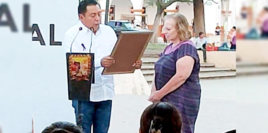 María Enriqueta Burelo Melgar es reconocida en Chiapa de Corzo con el galardón Florinda Lazos León, que otorgó por primera edición el Ayuntamiento de la colonial ciudad que dirige Leonardo Cuesta Ramos, presidente municipal.