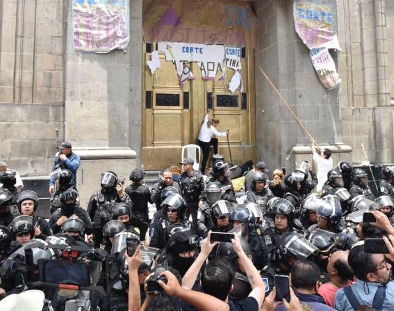 Pero la manifestación no quedó en solo eso, sino que los asistentes obligaron a salir de un plantón de disidentes apoyados por Claudia Sheinbaum, siguiendo las órdenes de su jefe el inquilino de Palacio, y que permanecía a las afueras de la sede judicial en protesta contra el actuar de los ministros y de su presidenta, Norma Piña.