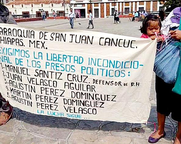 A un año de la detención de Agustín Pérez Domínguez, Juan Velasco Aguilar, Manuel Sánchez Cruz, Agustín Pérez Velasco y Martín Pérez Domínguez, señalados del delito de homicidio en el municipio de San Juan Cancuc, Petrona Hernández Pérez, de las esposas de uno de los detenidos urgió la liberación, pues afirmó son inocentes.