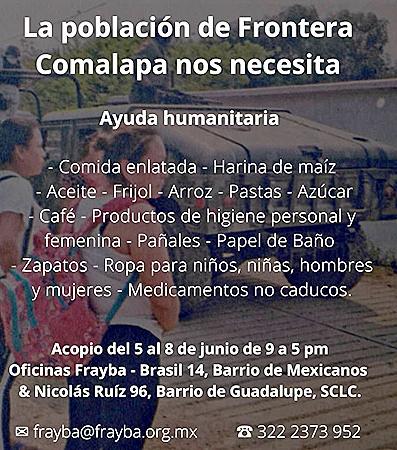 Fray Bartolomé de Las Casas (Frayba) hizo un llamado a la población en general, para solidarizarse con la ayuda humanitaria a la población de Frontera Comalapa.