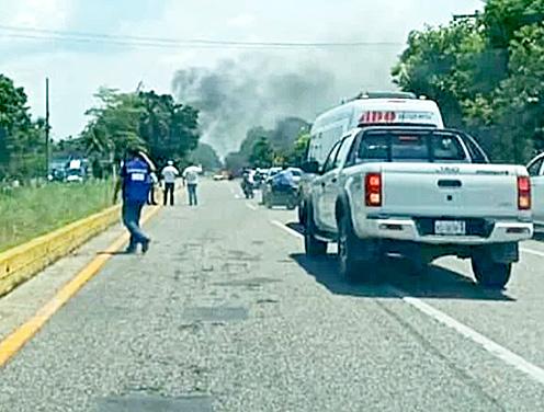 En el lugar fueron aseguradas una camioneta de color blanco y una motocicleta de color rojo y negro, las cuales fueron puestas a disposición de las autoridades investigadoras, además de un vehículo oficial que resultó con daños.