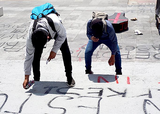 Un busto de Pablo Salazar Mendiguchía fue cargado por los alumnos junto a un ataúd de cartón con el nombre de José David recuerdan que el asalto las insta -