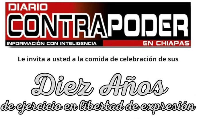 Sin lugar a dudas, en estos diez años de vida de CONTRA PODER EN CHIAPAS hemos fortalecido el signo de libertad de expresión con información muy cercana a la verdad, el análisis de los acontecimientos que atañen a Chiapas y México y la credibilidad que es patrimonio de un medio de comunicación como este que PEPE ADRIANO ha concebido.