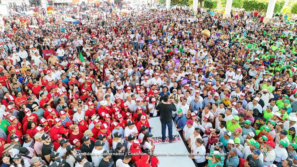 Con enorme algarabía, miles de chiapanecos de los municipios de Ixtapa y Pueblo Nuevo Solistahuacán, recibieron al candidato de la coalición “Sigamos Haciendo Historia en Chiapas”, Eduardo Ramírez Aguilar, quien hizo un llamado a construir un estado de paz, de unidad y de respeto.