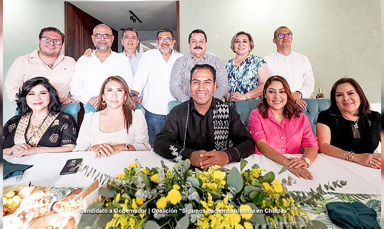 El candidato a la gubernatura del estado, por la coalición “Sigamos Haciendo Historia en Chiapas”, Eduardo Ramírez Aguilar, sostuvo una reunión con miembros de la asociación civil Fomento Económico de Chiapas.
