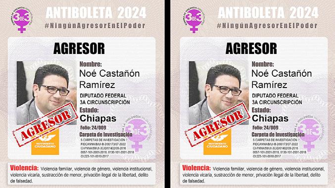 Es que en estas elecciones del 2024, Movimiento Ciudadano, tiene a dos políticos que están siendo protegidos por el partido naranja, Noé Castañón, que va como Diputado Federal y Juan Manuel Ramírez Velasco, protegido de Jorge Máynez, el primero con antecedentes de violencia Vicaria y sustracción de menores y el segundo, esta denunciado por violencia familiar, misma que provoco en su víctima, violencia psicológica.