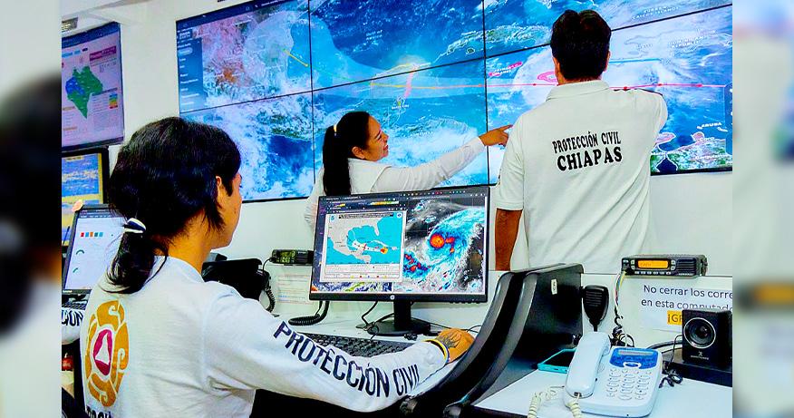 Para el estado de Chiapas, se pronostican lluvias fuertes a muy fuertes, indican acumulados superiores a 150 mm, desarrollo de Tormentas Severas aisladas a dispersas en algunas regiones del estado, inundaciones, deslizamientos de tierra y un riesgo moderado de desbordamientos de ríos o arroyos.