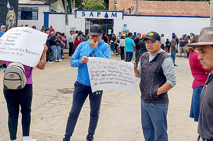 El Cerrillo, la Colonia 31 de Marzo, 14 de Septiembre, entre otros fraccionamientos se manifestaron frente a las instalaciones del Sistema de Agua Potable y Alcantarillado Municipal (Sapam) debido a la falta de suministro de agua potable en sus hogares.