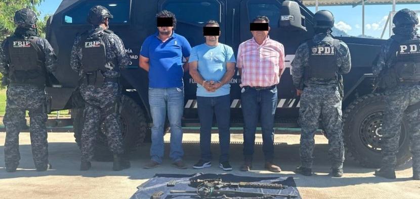 A los detenidos se les aseguró un vehículo Volkswagen Amarok 4x4 y dos fusiles, uno calibre .223 y otro calibre 7.62, ambos con cargadores abastecidos, informó la Fiscalía General del Estado