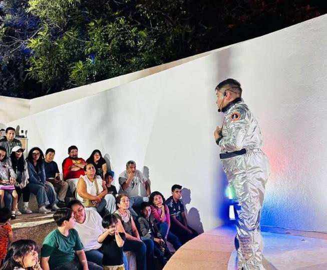 Más de 200 personas disfrutaron de una noche de ciencia y arte en el Planetario Tuxtla con el evento teatral Valija de Microcuentos Espaciales para Explorar el Universo. En el marco del evento, el director de la Agencia Digital Tecnológica del Estado de Chiapas, Jovani Salazar, destacó la importancia de este tipo de actividades para fortalecer el interés por la ciencia.