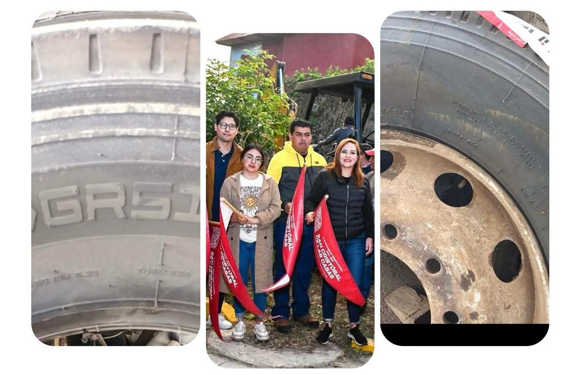 ¿Qué creen? El progenitor de la presidenta viene vendiendo y surtiendo LLANTAS, le compran nuevas y él entrega unas nuevas y otras vitalizadas, hoy aquí pueden ver fotografías tomadas a un camión del servicio de limpia… Con estos antecedentes, seguramente, también está cobrando refacciones nuevas y entregando refacciones reconstruidas, no originales y como le de la gana, total, la mandamás es su hija del Morena…