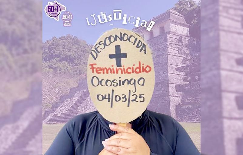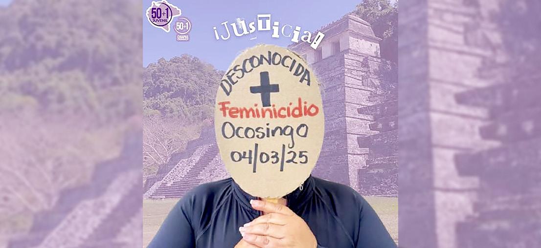 50 más 1 demanda a las autoridades actuar con celeridad en estos casos, brindar claridad a los familiares en las investigaciones y dar acompañamiento a las víctimas que sufren violencia en razón de género. Consideramos que es urgente que se implementen en el municipio de Ocosingo, y en las localidades donde se han presentado el mayor número de casos de feminicidios, políticas públicas para atender la violencia feminici-