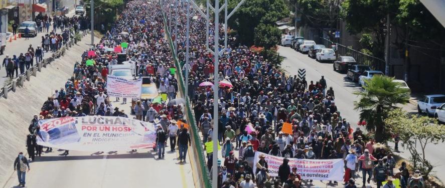 Alcaldes y comisarios de 13 municipios, acompañados de unos 5 mil manifestantes armados con palos, machetes y tubos, encabezaron una marcha en Chilpancingo para exigir a la gobernadora Evelyn Salgado Pineda obras, mejoras de los servicios de salud y rehabilitación de caminos.